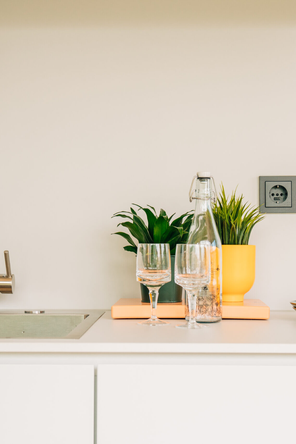 - Kitchenette mit 2-Feld Induktionskochfeld, Spüle mit Wasserhahn, Müllbehälter, Beleuchtung