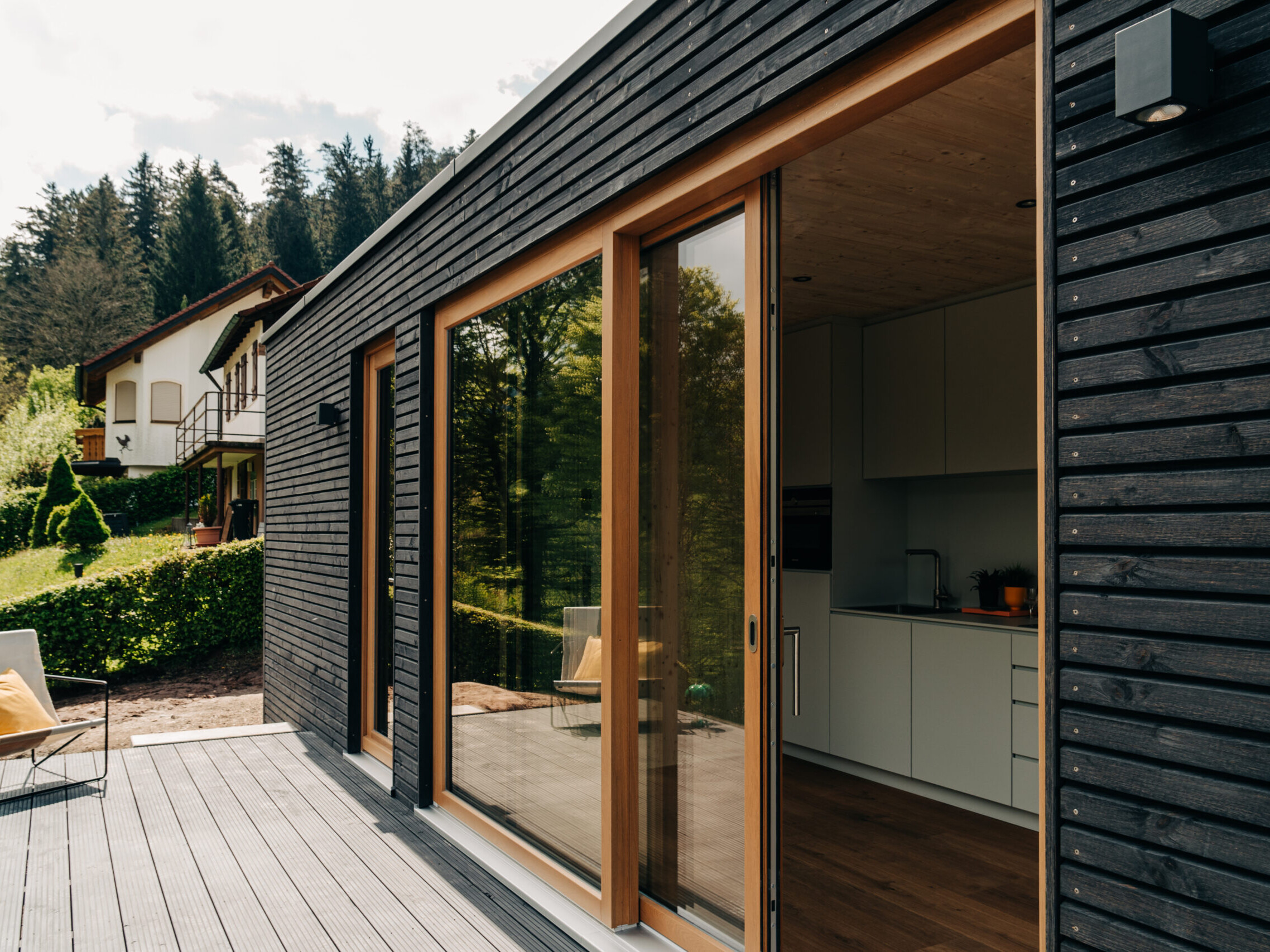 - Holzfenster und Eingangstür mit 3-fach Verglasung